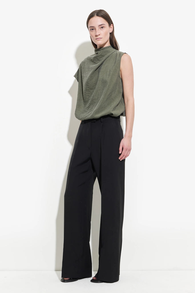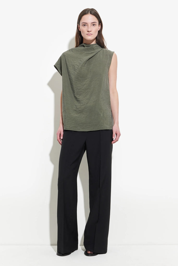 De TEIHO sleeveless top van Christian Wijnants is gemaakt van soepelvallende stof in een warme amandelbeige tint. De cleane, minimalistische pasvorm krijgt een zachte, sculpturale twist dankzij de gedrapeerde halslijn die naar één schouder valt. Met een ontspannen zoom en splitten aan de zijkanten voor een losse, elegante val over de heupen.