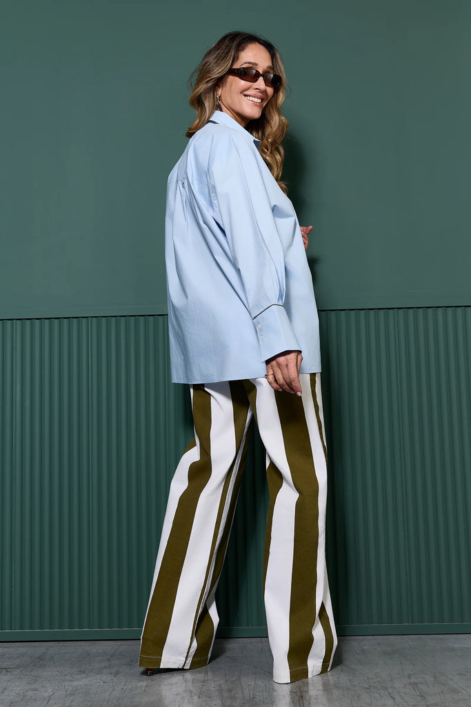 De La Camisa Solana van COCO Y MARIA is een oversized blouse met een moeiteloze, nonchalante uitstraling. De relaxte fit brengt balans in elke outfit en combineert perfect met statement rokken, prints of uitgesproken items. De contrasterende piping details geven subtiele structuur en definiëren het silhouet zonder het comfortabele karakter te verliezen. Draag La Camisa Solana los, half ingestopt of in laagjes voor een stijlvolle look met een moderne twist. Een veelzijdige essential van COCO Y MARIA die elke garderobe versterkt.