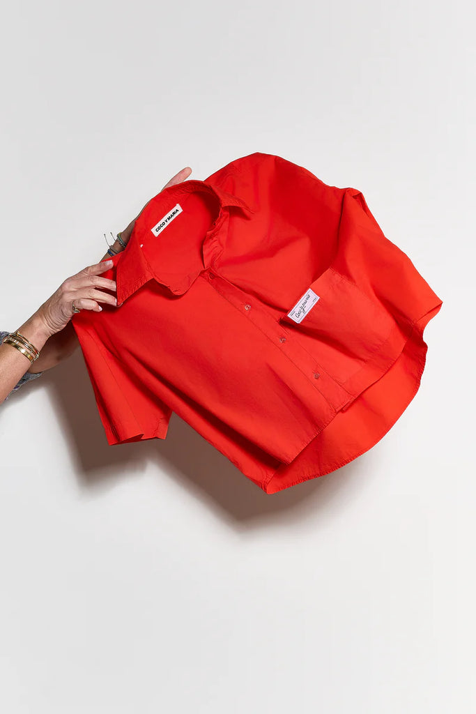 La Camisa Nina van Coco Y Maria is een cropped blouse met een krachtige uitstraling. De kortere, moderne snit geeft een frisse proportie aan de klassieke camisa, terwijl de levendige rode kleur direct in het oog springt. Het cleane design zorgt ervoor dat de blouse moeiteloos te stylen is.