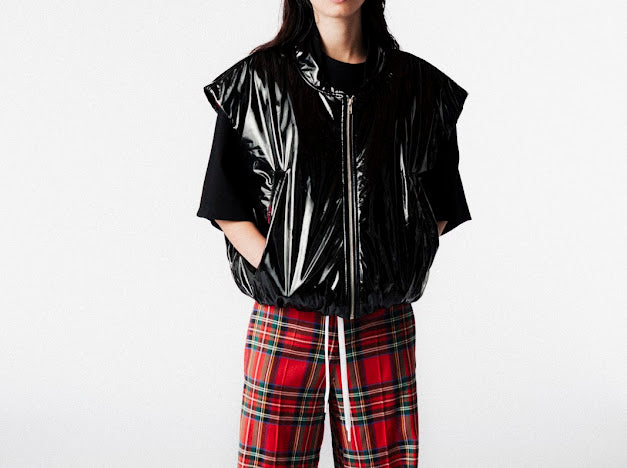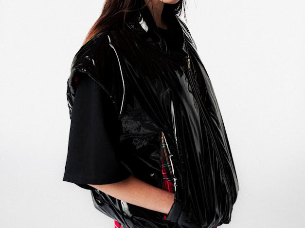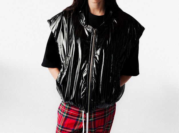 De CHESTO bomber van wearjohny is een gedurfde, mouwloze statement piece met een gewatteerde look en een opvallende geruite voering. Gemaakt van duurzaam PU-materiaal (vegan leer), combineert deze bomber een edgy silhouet met draagcomfort en stijl.