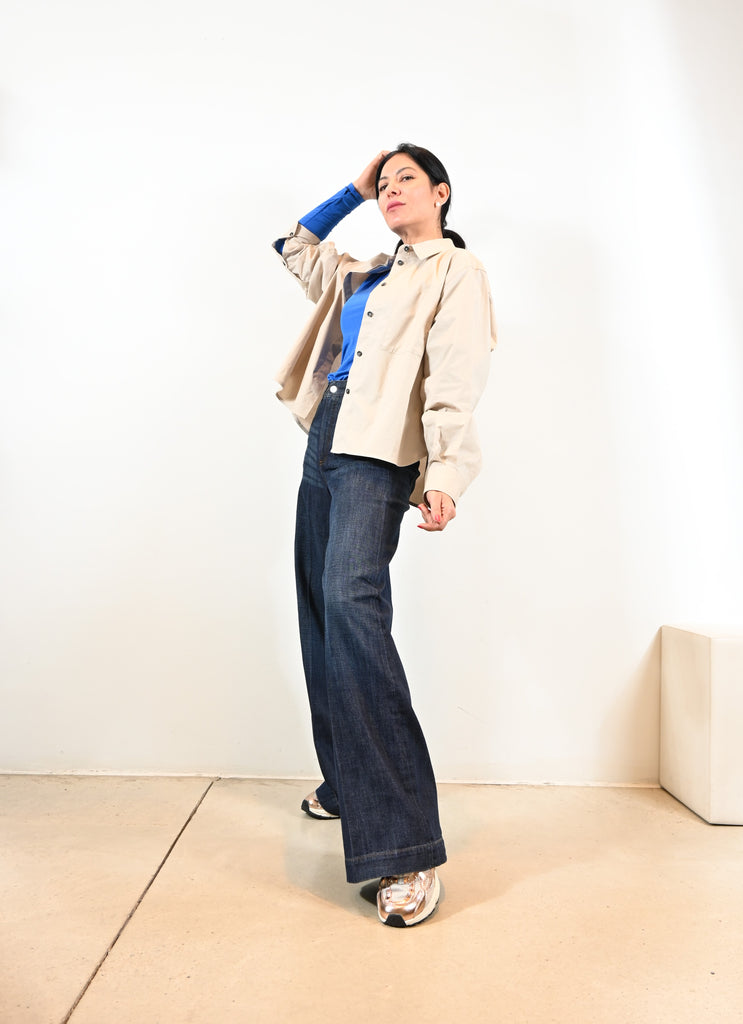 Deze blouse van Nine in the Morning in een subtiele sabbia / zandkleur combineert stijl en comfort: uitgevoerd met een enkele borstzak voor een minimalistisch detail en gemaakt in een tijdloze snit die moeiteloos te dragen is, zowel onder een blazer als solo voor een ontspannen elegante uitstraling.