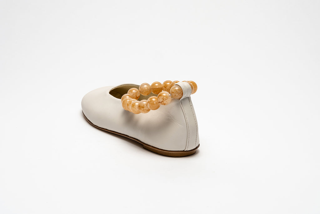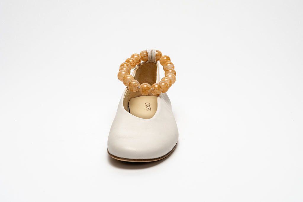 De Alma ballerina van Odare in wit leer is een elegante en speelse schoen. Het zachte leer zorgt voor optimaal comfort, terwijl de subtiele kralendecoratie een stijlvolle en vrouwelijke touch toevoegt. Perfect voor zowel dagelijks gebruik als speciale gelegenheden, en eenvoudig te combineren met verschillende outfits voor een chique look.