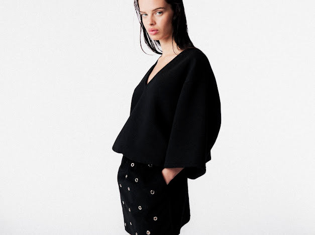 Minimalistisch, vrouwelijk en comfortabel: de Louise Top in diepzwart is een verfijnde sweater met V-hals, oversized mouwen en een elastische zoom voor een moderne, losse pasvorm. Gemaakt van 100% geborstelde katoen (fleeced cotton) – zacht, warm en ademend.