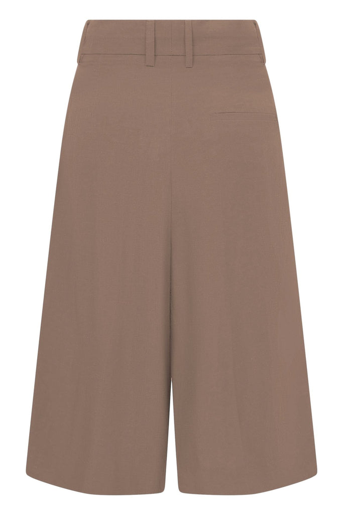De bermuda short van Rossi in de kleur zand is een stijlvolle en veelzijdige toevoeging aan je garderobe. Dankzij de high waist pasvorm creëert deze short een vrouwelijk silhouet, terwijl de wijde pijpen zorgen voor een moderne en comfortabele uitstraling. De verstelbare tailleband aan de binnenzijde biedt een perfecte pasvorm en extra draagcomfort. Ideaal om zowel casual als gekleed te combineren tijdens warme dagen.